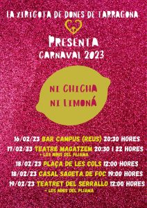 El dijous 16 de febrer a les 20.30h al Bar Campus, tret de sortida de les actuacions de la Xirigota de Dones de Tarragona per aquest Carnaval 2023.