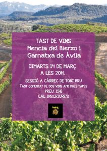Tast comentat de dos vins amb dues tapes. Tastarem Mencia del Bierzo i Garnatxa d’Àvila.