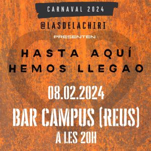 El dijous 8 de febrer a les 20h al Bar Campus, tret de sortida de les actuacions de la Xirigota de Dones de Tarragona per aquest Carnaval 2024.