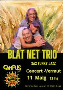 L’11 de maig és dissabte de festival Trapezi, i al Bar Campus hi tindrem música en directe amb Blat Net Trio (sax funky jazz), en concert-vermut a les 13h.