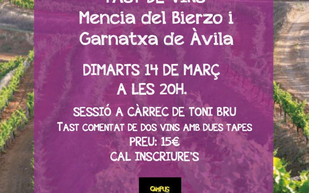 Tast comentat de dos vins amb dues tapes. Tastarem Mencia del Bierzo i Garnatxa d’Àvila.
