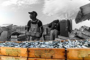 Persones compartint una nit sense estrelles, oscil·lant al ritme de les onades, embriagats per l’olor del peix i els vapors del gasoil.