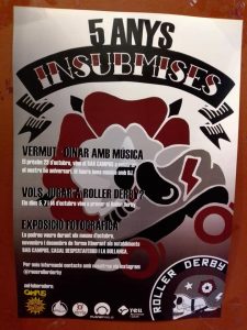 Durant el mes d’octubre al Bar Campus hi podeu veure una exposició de fotografies de les Insubmises Roller Derby Reus, que es troben immerses en activitats de promoció de l’equip i de celebració del seu 5è anniversari, amb sessions per a que noves jugadores s’animin a apuntar-se a l’equip, i un vermut-dinar de celebració al Bar Campus el 23 d’octubre.